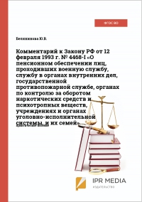 Белянинова, Ю. В. Комментарий к Закону РФ от 12 февраля 1993 г. № 4468-I «О пенсионном обеспечении лиц, проходивших военную службу, службу в органах внутренних дел, государственной противопожарной службе, органах по контролю за оборотом наркотических средств и психотропных веществ, учреждениях и органах уголовно-исполнительной системы, и их семей» / Ю. В. Белянинова. — Саратов : Ай Пи Эр Медиа, 2012. — 212 c. — Текст : электронный // Цифровой образовательный ресурс IPR SMART : [сайт]. — URL: https://www.iprbookshop.ru/5004.html (дата обращения: 02.09.2025). — Режим доступа: для авторизир. пользователей