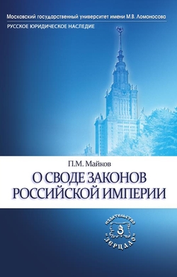 Майков, П. М. О Своде законов Российской империи / П. М. Майков ; под редакцией В. А. Томсинов. — Москва : Зерцало-М, 2014. — 294 c. — ISBN 978-5-94373-265-2. — Текст : электронный // Цифровой образовательный ресурс IPR SMART : [сайт]. — URL: https://www.iprbookshop.ru/52237.html (дата обращения: 23.12.2024). — Режим доступа: для авторизир. пользователей