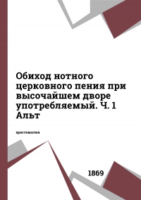 Обиход нотного церковного пения при высочайшем дворе употребляемый. Ч. 1 Альт / . — Санкт-Петербург : Российская национальная библиотека, 1869. — 184 c. — Текст : электронный // Цифровой образовательный ресурс IPR SMART : [сайт]. — URL: https://www.iprbookshop.ru/53062.html (дата обращения: 19.12.2025). — Режим доступа: для авторизир. пользователей