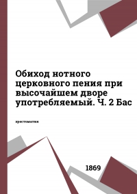 Обиход нотного церковного пения при высочайшем дворе употребляемый. Ч. 2 Бас / . — Санкт-Петербург : Российская национальная библиотека, 1869. — 385 c. — Текст : электронный // Цифровой образовательный ресурс IPR SMART : [сайт]. — URL: https://www.iprbookshop.ru/53068.html (дата обращения: 19.12.2025). — Режим доступа: для авторизир. пользователей