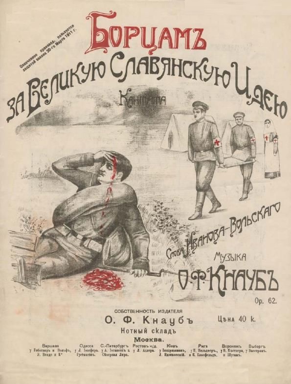 Кнауб О.Ф. Борцам за Великую Славянскую Идею «Собирайтесь славянские братья!...». Кантата. Для фортепиано, для смешанного хора без сопровождения. Ор. 62 / Кнауб О.Ф.. — Санкт-Петербург : Российская национальная библиотека, 1914. — 3 c. — Текст : электронный // Цифровой образовательный ресурс IPR SMART : [сайт]. — URL: https://www.iprbookshop.ru/53197.html (дата обращения: 06.12.2025). — Режим доступа: для авторизир. пользователей