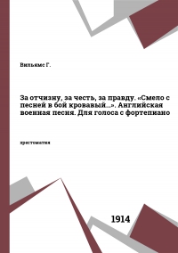 Вильямс Г. За отчизну, за честь, за правду. «Смело с песней в бой кровавый…». Английская военная песня. Для голоса с фортепиано / Вильямс Г.. — Санкт-Петербург : Российская национальная библиотека, 1914. — 4 c. — Текст : электронный // Цифровой образовательный ресурс IPR SMART : [сайт]. — URL: https://www.iprbookshop.ru/53214.html (дата обращения: 08.12.2025). — Режим доступа: для авторизир. пользователей