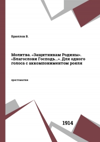 Брюллов В. Молитва. «Защитникам Родины». «Благослови Господь…». Для одного голоса с аккомпониментом рояля / Брюллов В.. — Санкт-Петербург : Российская национальная библиотека, 1914. — 4 c. — Текст : электронный // Цифровой образовательный ресурс IPR SMART : [сайт]. — URL: https://www.iprbookshop.ru/53224.html (дата обращения: 18.12.2025). — Режим доступа: для авторизир. пользователей