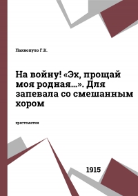 Пахиопуло Г.К. На войну! «Эх, прощай моя родная…». Для запевала со смешанным хором / Пахиопуло Г.К.. — Санкт-Петербург : Российская национальная библиотека, 1915. — 3 c. — Текст : электронный // Цифровой образовательный ресурс IPR SMART : [сайт]. — URL: https://www.iprbookshop.ru/53226.html (дата обращения: 05.12.2025). — Режим доступа: для авторизир. пользователей