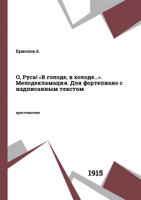 Ермолов А. О, Русь! «В голоде, в холоде…». Мелодекламация. Для фортепиано с надписанным текстом / Ермолов А.. — Санкт-Петербург : Российская национальная библиотека, 1915. — 7 c. — Текст : электронный // Цифровой образовательный ресурс IPR SMART : [сайт]. — URL: https://www.iprbookshop.ru/53232.html (дата обращения: 07.12.2025). — Режим доступа: для авторизир. пользователей