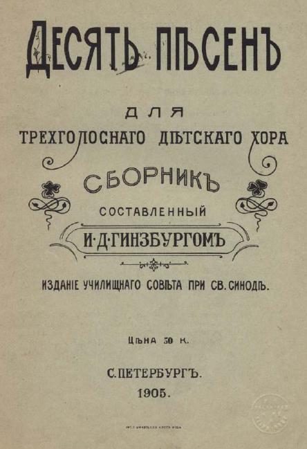 Десять песен. Для трехголосного детского хора / . — Санкт-Петербург : Российская национальная библиотека, 1905. — 26 c. — Текст : электронный // Цифровой образовательный ресурс IPR SMART : [сайт]. — URL: https://www.iprbookshop.ru/53276.html (дата обращения: 15.12.2025). — Режим доступа: для авторизир. пользователей