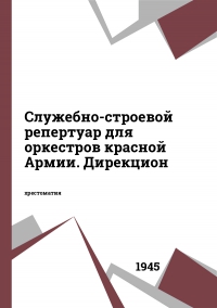 Служебно-строевой репертуар для оркестров красной Армии. Дирекцион / . — Санкт-Петербург : Российская национальная библиотека, 1945. — 157 c. — Текст : электронный // Цифровой образовательный ресурс IPR SMART : [сайт]. — URL: https://www.iprbookshop.ru/53659.html (дата обращения: 14.12.2025). — Режим доступа: для авторизир. пользователей