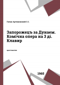 Гулак-Артемовский С.С. Запорожецъ за Дунаем. Комiчна опера на 3 дi. Клавир / Гулак-Артемовский С.С.. — Санкт-Петербург : Российская национальная библиотека, 1965. — 197 c. — Текст : электронный // Цифровой образовательный ресурс IPR SMART : [сайт]. — URL: https://www.iprbookshop.ru/53693.html (дата обращения: 14.12.2025). — Режим доступа: для авторизир. пользователей