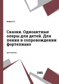 Бойко Р.Г Сказки. Одноактные оперы для детей. Для пения в сопровождении фортепиано / Бойко Р.Г. — Санкт-Петербург : Российская национальная библиотека, 1981. — 114 c. — Текст : электронный // Цифровой образовательный ресурс IPR SMART : [сайт]. — URL: https://www.iprbookshop.ru/53727.html (дата обращения: 14.12.2025). — Режим доступа: для авторизир. пользователей