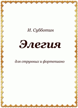 Субботин И. Элегия для струнных и фортепиано : партитура / Субботин И.. — Саратов : Саратовская государственная консерватория имени Л.В. Собинова, 2015. — 8 c. — ISBN 979-0-706385-34-1. — Текст : электронный // Цифровой образовательный ресурс IPR SMART : [сайт]. — URL: https://www.iprbookshop.ru/54427.html (дата обращения: 05.12.2025). — Режим доступа: для авторизир. пользователей