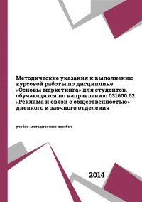 Цель данного методического указания, предназначенного для руководства выполнения курсовой работы, состоит в закреплении и углублении теоретических знаний, полученных при изучении дисциплины «Основы маркетинга», а также в усвоении методов и приемов маркетингового исследования рынка и тактического планирования маркетинговой деятельности, в том числе в области продвижения на рынке.