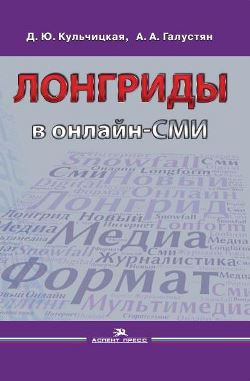 Кульчицкая, Д. Ю. Лонгриды в онлайн-СМИ : особенности и технология создания / Д. Ю. Кульчицкая, А. А. Галустян. — Москва : Аспект Пресс, 2016. — 80 c. — ISBN 978-5-7567-0845-5. — Текст : электронный // Цифровой образовательный ресурс IPR SMART : [сайт]. — URL: https://www.iprbookshop.ru/56295.html (дата обращения: 27.04.2025). — Режим доступа: для авторизир. пользователей