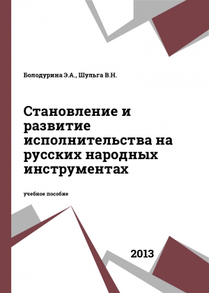 Болодурина, Э. А. Становление и развитие исполнительства на русских народных инструментах : учебное пособие по дисциплине «История исполнительства на народных инструментах» для студентов, обучающихся по направлениям подготовки 073100 Музыкально-инструментальное искусство, 071500 Народная художественная культура / Э. А. Болодурина, В. Н. Шульга. — Челябинск : Челябинский государственный институт культуры, 2013. — 156 c. — ISBN 978-5-94839-408-4. — Текст : электронный // Цифровой образовательный ресурс IPR SMART : [сайт]. — URL: https://www.iprbookshop.ru/56505.html (дата обращения: 27.02.2025). — Режим доступа: для авторизир. пользователей