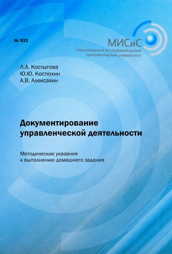 Костыгова, Л. А. Документирование управленческой деятельности : методические указания к выполнению домашнего задания / Л. А. Костыгова, Ю. Ю. Костюхин, А. В. Алексахин. — Москва : Издательский Дом МИСиС, 2011. — 24 c. — Текст : электронный // Цифровой образовательный ресурс IPR SMART : [сайт]. — URL: https://www.iprbookshop.ru/56736.html (дата обращения: 28.08.2025). — Режим доступа: для авторизир. пользователей
