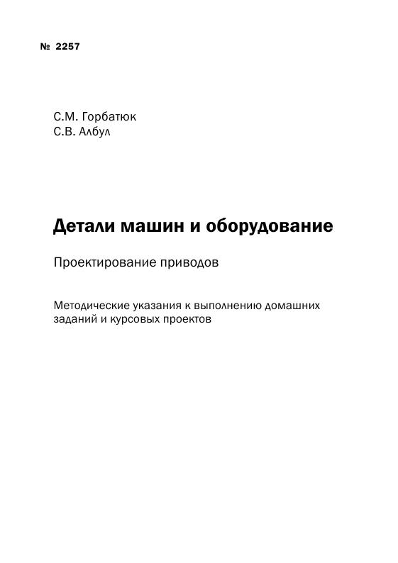 Горбатюк, С. М. Детали машин и оборудование. Проектирование приводов : методические указания к выполнению домашних заданий и курсовых проектов / С. М. Горбатюк, С. В. Албул. — Москва : Издательский Дом МИСиС, 2013. — 94 c. — Текст : электронный // Цифровой образовательный ресурс IPR SMART : [сайт]. — URL: https://www.iprbookshop.ru/57083.html (дата обращения: 05.05.2025). — Режим доступа: для авторизир. пользователей