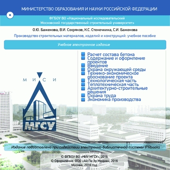 Производство строительных материалов, изделий и конструкций : учебное пособие / О.Ю. Баженова [и др.].. — Москва : Московский государственный строительный университет, Ай Пи Эр Медиа, ЭБС АСВ, 2016. — 159 c. — ISBN 978-5-7264-1366-2. — Текст : электронный // Цифровой образовательный ресурс IPR SMART : [сайт]. — URL: https://www.iprbookshop.ru/57298.html (дата обращения: 19.12.2025). — Режим доступа: для авторизир. пользователей