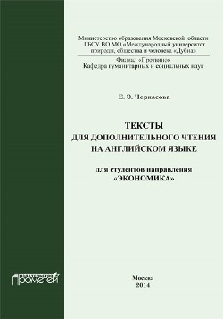 Черкасова, Е. Э. Тексты для дополнительного чтения на английском языке для студентов направления «Экономика» : методическое пособие / Е. Э. Черкасова. — Москва : Прометей, 2014. — 60 c. — ISBN 978-5-7042-2533-1. — Текст : электронный // Цифровой образовательный ресурс IPR SMART : [сайт]. — URL: https://www.iprbookshop.ru/58205.html (дата обращения: 09.12.2024). — Режим доступа: для авторизир. пользователей