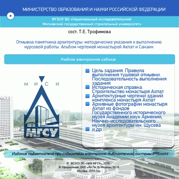 Отмывка памятника архитектуры. Альбом чертежей монастырей Ахпат и Санаин : методические указания к выполнению курсовой работы / . — Москва : Московский государственный строительный университет, Ай Пи Эр Медиа, ЭБС АСВ, 2016. — 57 c. — ISBN 978-5-7264-1356-3. — Текст : электронный // Цифровой образовательный ресурс IPR SMART : [сайт]. — URL: https://www.iprbookshop.ru/58229.html (дата обращения: 05.12.2025). — Режим доступа: для авторизир. пользователей