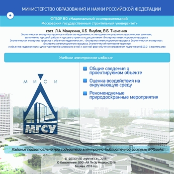 Экологическая экспертиза проектов и объектов недвижимости : методические указания к практическим занятиям, выполнению курсовой работы и курсового проекта по дисциплинам «Экспертиза инвестиционного процесса. Экологическая экспертиза проектов и объектов недвижимости», «Экспертиза инвестиционного процесса. Экологическая экспертиза», «Экспертиза инвестиционного процесса. Экологический мониторинг проектов и объектов недвижимости» для студентов бакалавриата очной и заочной форм обучения направления подготовки 08.03.01 Строительство / . — Москва : Московский государственный строительный университет, Ай Пи Эр Медиа, ЭБС АСВ, 2016. — 34 c. — ISBN 978-5-7264-1368-6. — Текст : электронный // Цифровой образовательный ресурс IPR SMART : [сайт]. — URL: https://www.iprbookshop.ru/58230.html (дата обращения: 22.12.2025). — Режим доступа: для авторизир. пользователей