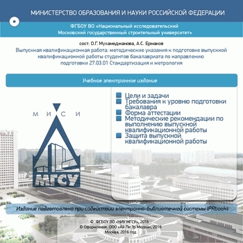 Выпускная квалификационная работа : методические указания к подготовке выпускной квалификационной работы студентов бакалавриата по направлению подготовки 27.03.01 Стандартизация и метрология / . — Москва : Московский государственный строительный университет, Ай Пи Эр Медиа, ЭБС АСВ, 2016. — 48 c. — ISBN 978-5-7264-1393-8. — Текст : электронный // Цифровой образовательный ресурс IPR SMART : [сайт]. — URL: https://www.iprbookshop.ru/58237.html (дата обращения: 06.12.2025). — Режим доступа: для авторизир. пользователей