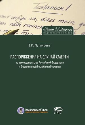 Путинцева, Е. П. Распоряжения на случай смерти по законодательству Российской Федерации и Федеративной Республики Германия / Е. П. Путинцева. — Москва : Статут, 2016. — 160 c. — ISBN 978-5-8354-1255-6. — Текст : электронный // Цифровой образовательный ресурс IPR SMART : [сайт]. — URL: https://www.iprbookshop.ru/58278.html (дата обращения: 01.04.2025). — Режим доступа: для авторизир. пользователей