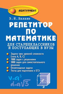Балаян Э.Н. Репетитор по математике для старшеклассников и поступающих в вузы / Балаян Э.Н.. — Ростов-на-Дону : Феникс, 2010. — 775 c. — ISBN 978-5-222-17284-1. — Текст : электронный // Цифровой образовательный ресурс IPR SMART : [сайт]. — URL: https://www.iprbookshop.ru/58997.html (дата обращения: 12.12.2025). — Режим доступа: для авторизир. пользователей
