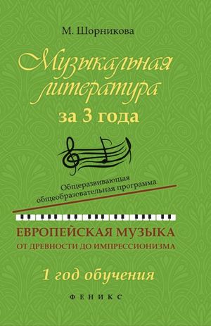 Шорникова, М. И. Музыкальная литература за 3 года. Европейская музыка от древности до импрессионизма. 1 год обучения : общеразвивающая общеобразовательная программа / М. И. Шорникова. — Ростов-на-Дону : Феникс, 2017. — 349 c. — ISBN 978-5-222-28362-2. — Текст : электронный // Цифровой образовательный ресурс IPR SMART : [сайт]. — URL: https://www.iprbookshop.ru/59382.html (дата обращения: 21.01.2025). — Режим доступа: для авторизир. пользователей