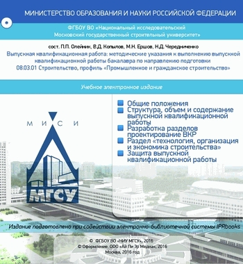 Выпускная квалификационная работа : методические указания к выполнению выпускной квалификационной работы бакалавра по направлению подготовки 08.03.01 Строительство, профиль «Промышленное и гражданское строительство» / . — Москва : Московский государственный строительный университет, Ай Пи Эр Медиа, ЭБС АСВ, 2016. — 41 c. — ISBN 978-5-7264-1419-5. — Текст : электронный // Цифровой образовательный ресурс IPR SMART : [сайт]. — URL: https://www.iprbookshop.ru/59954.html (дата обращения: 17.12.2025). — Режим доступа: для авторизир. пользователей