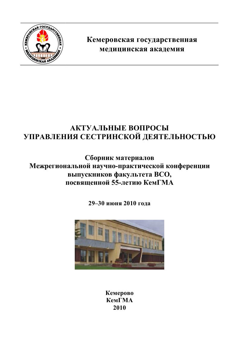 Актуальные вопросы управления сестринской деятельностью. Сборник материалов Межрегиональной научно-практической конференции выпускников факультета ВСО, посвященной 55-летию КемГМА