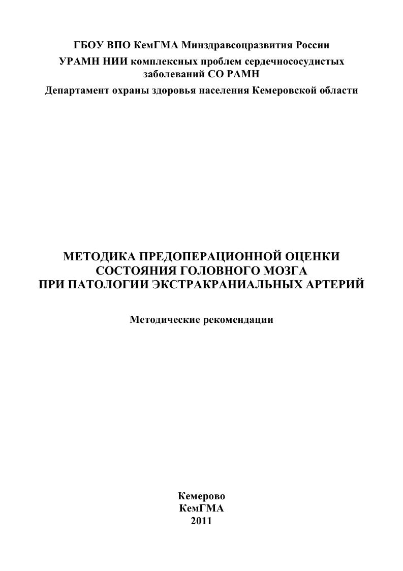 Методика предоперационной оценки состояния головного мозга при патологии экстракраниальных артерий. Методические рекомендации