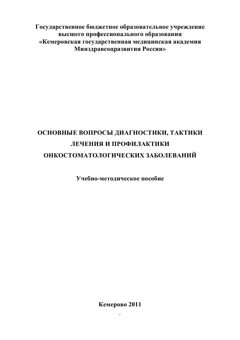 Основные вопросы диагностики, тактики, лечения и профилактики онкостоматологических заболеваний. Учебное пособие