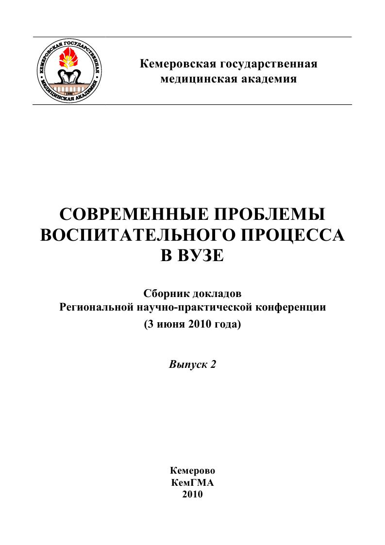 Современные проблемы воспитательного процесса в вузе : сборник докладов Региональной научно-практической конференции. / Н. Ю. Анастасов, В. Б. Вальков, Н. Ю. Анастасов [и др.] ; под редакцией В. М. Ивойлов. — Кемерово : Кемеровская государственная медицинская академия, 2010. — 198 c. — Текст : электронный // Цифровой образовательный ресурс IPR SMART : [сайт]. — URL: https://www.iprbookshop.ru/6089.html (дата обращения: 11.09.2025). — Режим доступа: для авторизир. пользователей