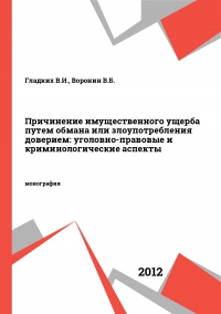 Гладких, В. И. Причинение имущественного ущерба путем обмана или злоупотребления доверием: уголовно-правовые и криминологические аспекты : монография / В. И. Гладких, В. Б. Воронин. — Москва : Международный юридический институт, 2012. — 140 c. — Текст : электронный // Цифровой образовательный ресурс IPR SMART : [сайт]. — URL: https://www.iprbookshop.ru/61441.html (дата обращения: 11.05.2025). — Режим доступа: для авторизир. пользователей