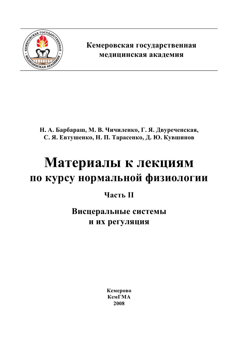 Материалы к лекциям по курсу нормальной физиологии. Часть II. Висцеральные системы и их регуляция / Н.А. Барбараш [и др.].. — Кемерово : Кемеровская государственная медицинская академия, 2008. — 156 c. — Текст : электронный // Цифровой образовательный ресурс IPR SMART : [сайт]. — URL: https://www.iprbookshop.ru/6151.html (дата обращения: 18.12.2025). — Режим доступа: для авторизир. пользователей