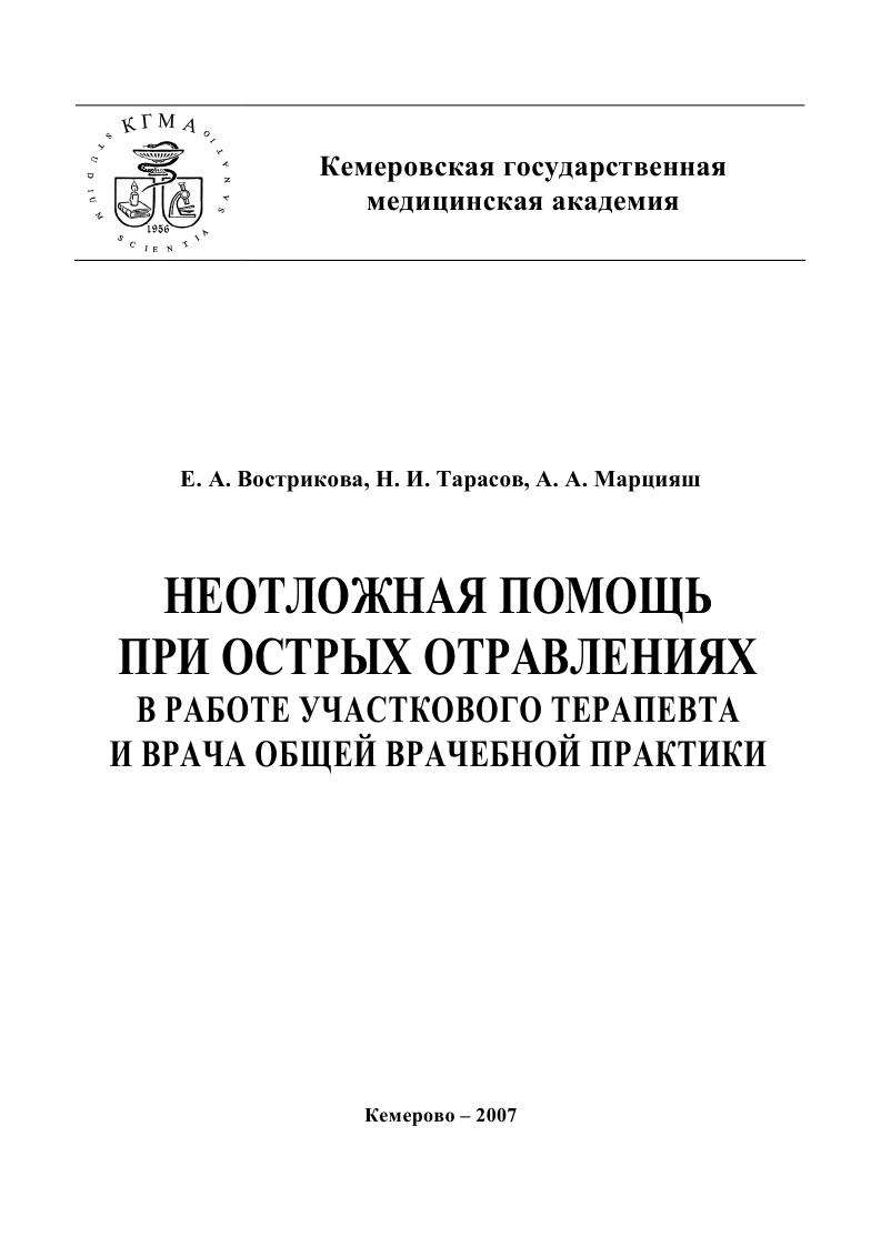 Вострикова Е.А. Неотложная помощь при острых отравлениях в практике участкового терапевта и врача общей врачебной практики : учебное пособие / Вострикова Е.А., Тарасов Н.И., Марцияш А.А.. — Кемерово : Кемеровская государственная медицинская академия, 2007. — 24 c. — Текст : электронный // Цифровой образовательный ресурс IPR SMART : [сайт]. — URL: https://www.iprbookshop.ru/6168.html (дата обращения: 09.12.2025). — Режим доступа: для авторизир. пользователей