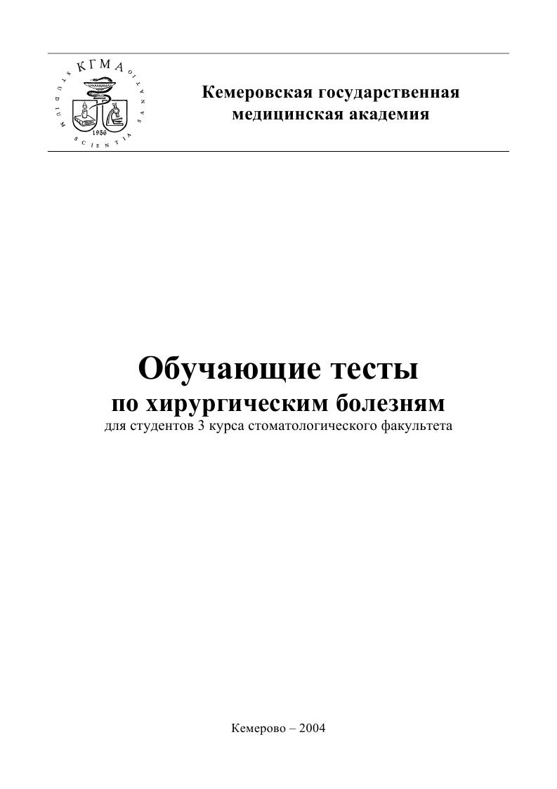 Обучающие тесты по хирургическим болезням для студентов 3 курса стоматологического факультета