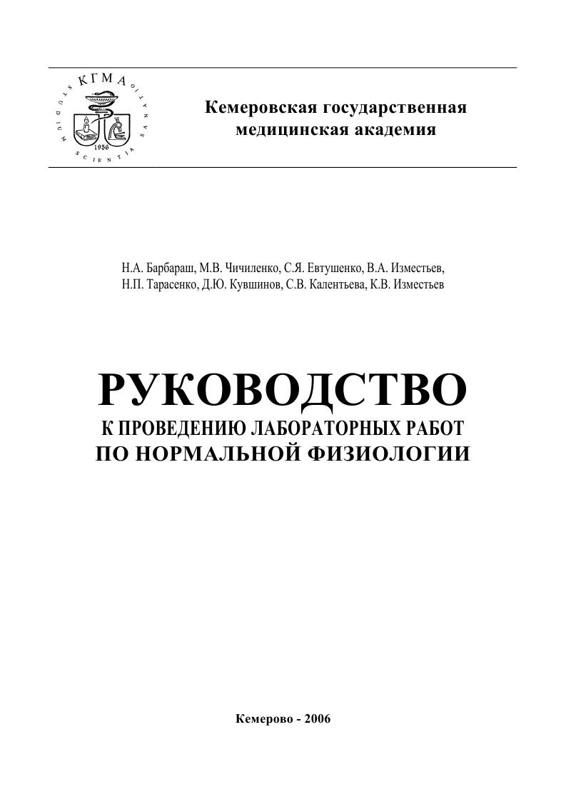 Настоящее руководство составлено коллективом кафедры нормальной физиологии Кемеровской государственной медицинской академии для использования студентами при подготовке к лабораторным занятиям и проведении наблюдений и экспериментов на занятиях. Руководство включает описание цели работ, оборудования, необходимого для их проведения, описания хода работ, рекомендации по оформлению протоколов и использованию дополнительной литературы при подготовке к занятию.