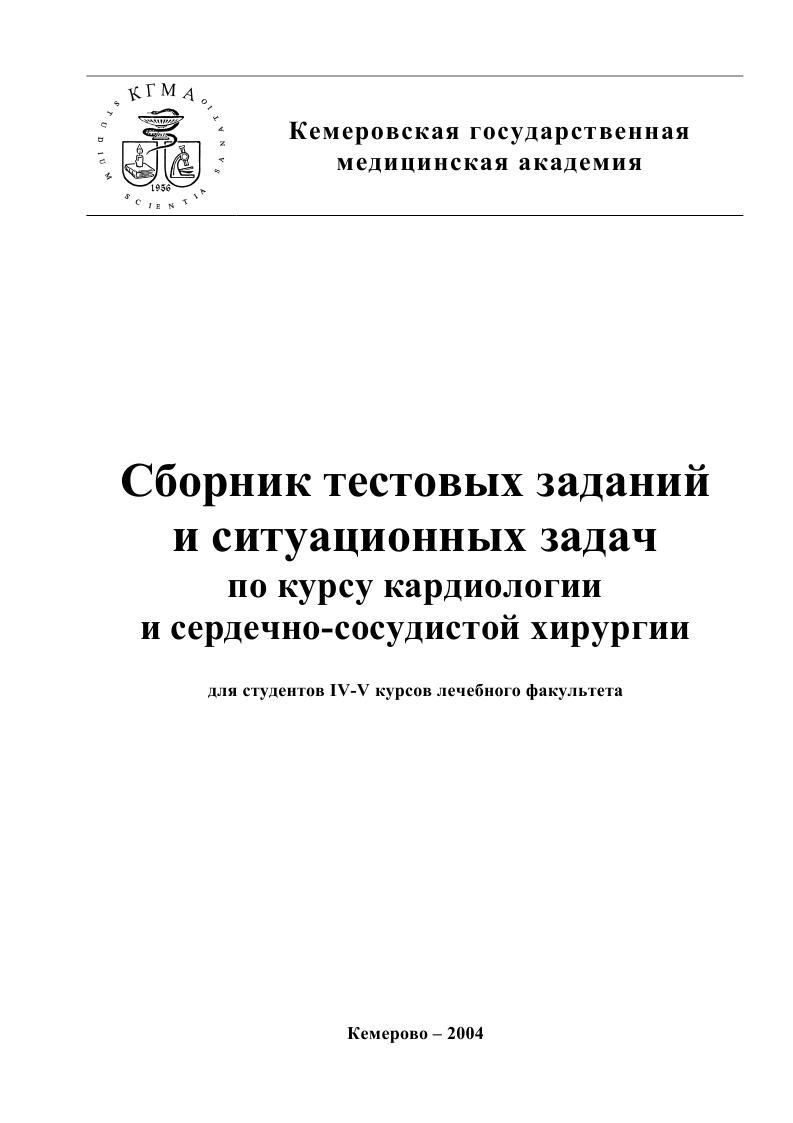 Сборник тестовых заданий и ситуационных задач по курсу кардиологии и сердечно-сосудистой хирургии для студентов IV-V курсов лечебного факультета / . — Кемерово : Кемеровская государственная медицинская академия, 2004. — 144 c. — Текст : электронный // Цифровой образовательный ресурс IPR SMART : [сайт]. — URL: https://www.iprbookshop.ru/6219.html (дата обращения: 10.12.2025). — Режим доступа: для авторизир. пользователей