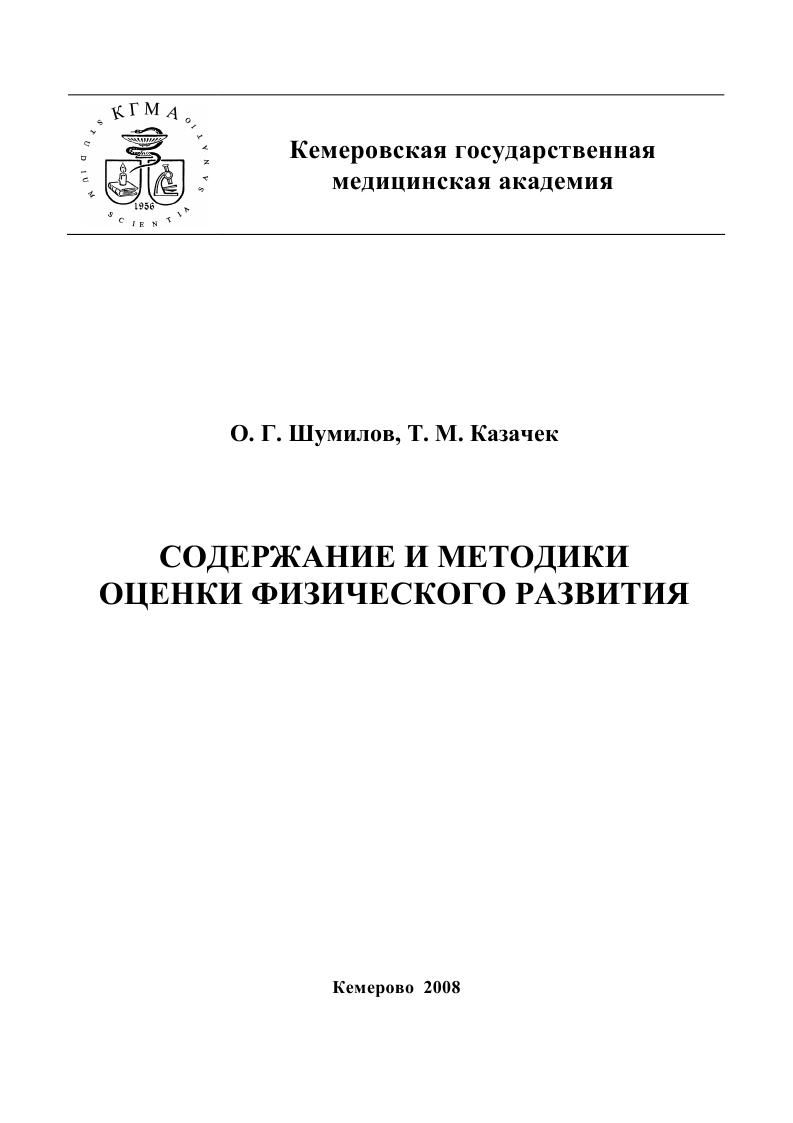 Содержание и методики оценки физического развития. Методические рекомендации для студентов лечебного, педиатрического и медико-профилактического факультетов медицинской академии
