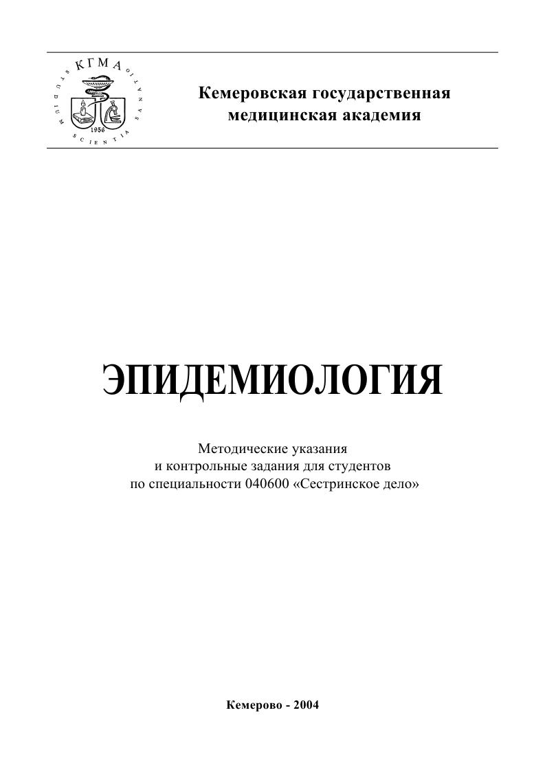 Эпидемиология. Методические указания и контрольные задания для студентов по специальности 040600 «Сестринское дело»