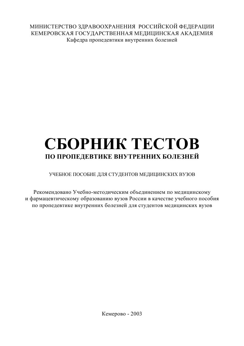 Сборник тестов по пропедевтике внутренних болезней. Учебное пособие для студентов медицинских вузов