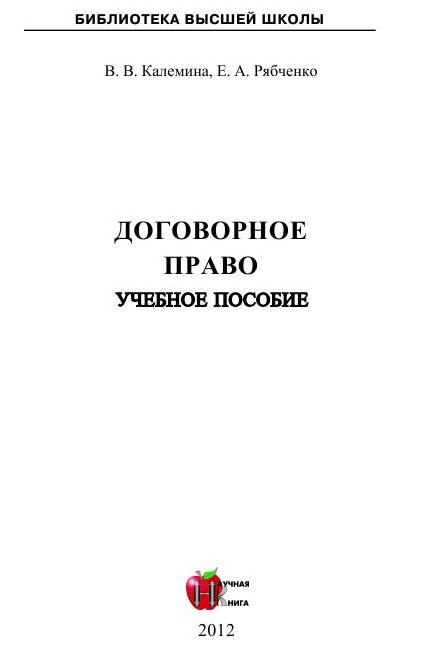 Калемина, В. В. Договорное право : учебное пособие / В. В. Калемина, Е. А. Рябченко. — Саратов : Научная книга, 2012. — 254 c. — Текст : электронный // Цифровой образовательный ресурс IPR SMART : [сайт]. — URL: https://www.iprbookshop.ru/6265.html (дата обращения: 14.05.2025). — Режим доступа: для авторизир. пользователей