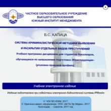 Капица В.С. Система криминалистической методики выявления и раскрытия отдельных видов преступлений : учебная программа дисциплины для студентов-бакалавров, обучающихся по направлению подготовки «Юриспруденция» (уголовно-правовой профиль) / Капица В.С.. — Краснодар, Саратов : Южный институт менеджмента, Ай Пи Эр Медиа, 2017. — 25 c. — Текст : электронный // Цифровой образовательный ресурс IPR SMART : [сайт]. — URL: https://www.iprbookshop.ru/62650.html (дата обращения: 05.12.2025). — Режим доступа: для авторизир. пользователей