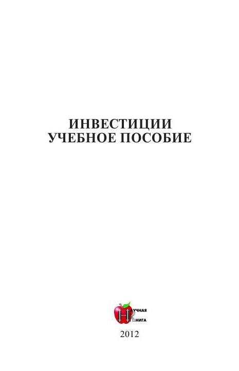 Мальцева, Ю. Н. Инвестиции : учебное пособие / Ю. Н. Мальцева. — Саратов : Научная книга, 2012. — 159 c. — Текст : электронный // Цифровой образовательный ресурс IPR SMART : [сайт]. — URL: https://www.iprbookshop.ru/6277.html (дата обращения: 04.07.2025). — Режим доступа: для авторизир. пользователей