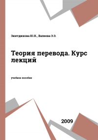 Зиятдинова Ю.Н. Теория перевода. Курс лекций : учебное пособие / Зиятдинова Ю.Н., Валеева Э.Э.. — Казань : Казанский национальный исследовательский технологический университет, 2009. — 118 c. — ISBN 978-5-7882-0786-5. — Текст : электронный // Цифровой образовательный ресурс IPR SMART : [сайт]. — URL: https://www.iprbookshop.ru/63479.html (дата обращения: 17.12.2025). — Режим доступа: для авторизир. пользователей