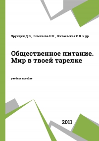 Общественное питание. Мир в твоей тарелке : учебное пособие / Д. В. Хрундин, Н. К. Романова, С. В. Китаевская, О. А. Решетник ; под редакцией Е. И. Шевченко. — Казань : Казанский национальный исследовательский технологический университет, 2011. — 87 c. — ISBN 978-5-7882-0989-0. — Текст : электронный // Цифровой образовательный ресурс IPR SMART : [сайт]. — URL: https://www.iprbookshop.ru/63746.html (дата обращения: 29.11.2025). — Режим доступа: для авторизир. пользователей