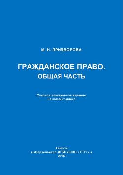 Придворова, М. Н. Гражданское право. Общая часть : учебное пособие для студентов специальности 030900 «Юриспруденция», обучающихся с применением балльно-рейтинговой системы оценки образовательной деятельности / М. Н. Придворова. — Тамбов : Тамбовский государственный технический университет, ЭБС АСВ, 2015. — 81 c. — ISBN 978-5-8265-1421-4. — Текст : электронный // Цифровой образовательный ресурс IPR SMART : [сайт]. — URL: https://www.iprbookshop.ru/64077.html (дата обращения: 19.06.2023). — Режим доступа: для авторизир. пользователей