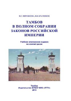 Пирожкова, И. Г. Тамбов в Полном собрании законов Российской империи : учебное пособие / И. Г. Пирожкова, В. В. Красников. — Тамбов : Тамбовский государственный технический университет, ЭБС АСВ, 2013. — 140 c. — Текст : электронный // Цифровой образовательный ресурс IPR SMART : [сайт]. — URL: https://www.iprbookshop.ru/64585.html (дата обращения: 19.03.2025). — Режим доступа: для авторизир. пользователей