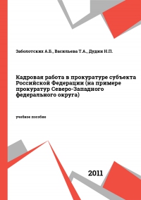 Заболотских, А. Б. Кадровая работа в прокуратуре субъекта Российской Федерации (на примере прокуратур Северо-Западного федерального округа) : учебное пособие / А. Б. Заболотских, Т. А. Васильева, Н. П. Дудин ; под редакцией Н. П. Дудин. — Санкт-Петербург : Санкт-Петербургский юридический институт (филиал) Академии Генеральной прокуратуры РФ, 2011. — 137 c. — Текст : электронный // Цифровой образовательный ресурс IPR SMART : [сайт]. — URL: https://www.iprbookshop.ru/65445.html (дата обращения: 06.10.2025). — Режим доступа: для авторизир. пользователей