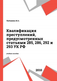 Любавина, М. А. Квалификация преступлений, предусмотренных статьями 285, 286, 292 и 293 УК РФ : учебное пособие / М. А. Любавина. — Санкт-Петербург : Санкт-Петербургский юридический институт (филиал) Академии Генеральной прокуратуры РФ, 2010. — 188 c. — Текст : электронный // Цифровой образовательный ресурс IPR SMART : [сайт]. — URL: https://www.iprbookshop.ru/65449.html (дата обращения: 31.07.2025). — Режим доступа: для авторизир. пользователей